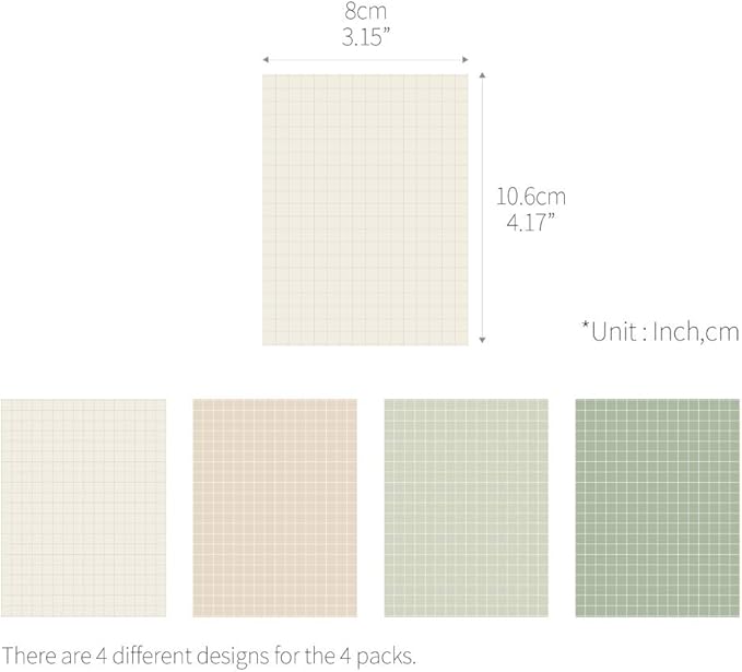 Monolike Memopad Smoothie Ver.3 design SET - 4 Packs, 4 Different Designs, 100 Sheets Per Pad, Total 400 Sheets, Note pads, Writing pads