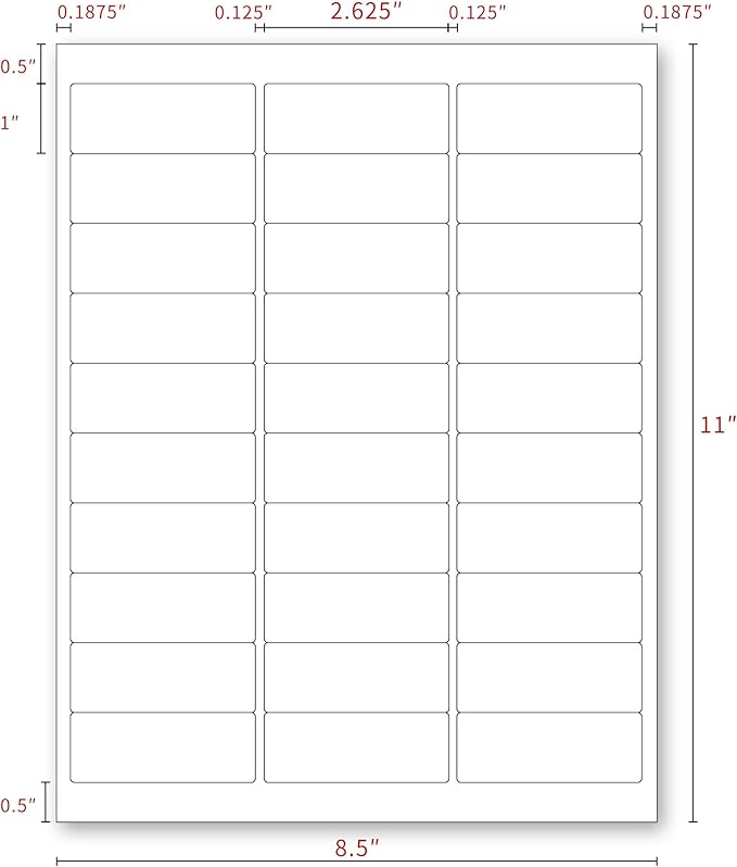 - 3000 PRINTER LABELS come in 100 sheets of 30 labels each. Each label measures 1”H x 2.625”W, perfect for creating your own return address stickers on your laser or inkjet printer.