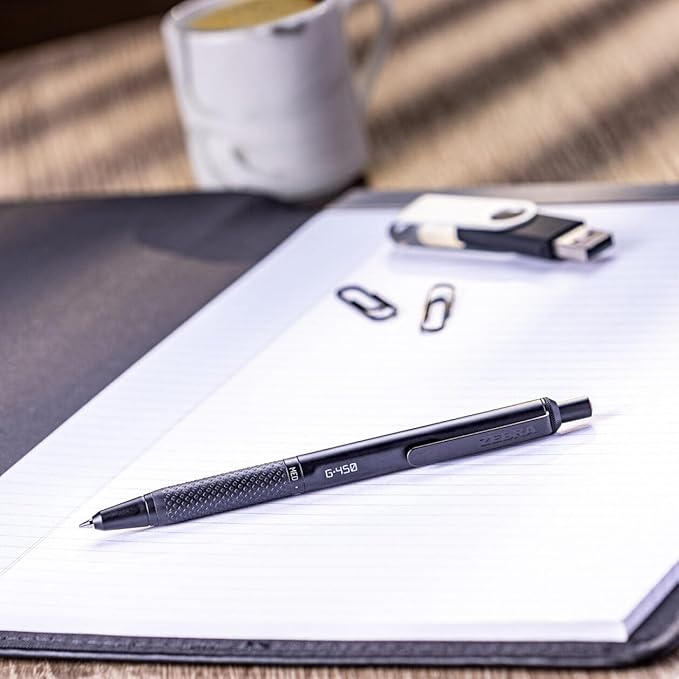 Zebra Pen G-450 Gel Pen 1-Pack, Black Ink, 0.7mm Medium Point, Black Brass Barrel, Textured Rubber Grip, Secure Metal Clip, Refillable (49511)