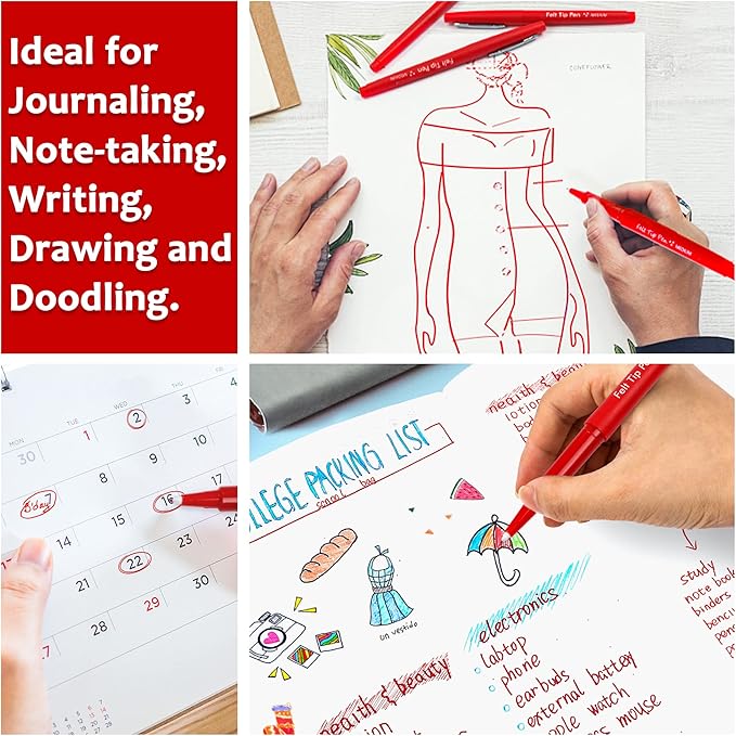 - UNLIMITED USES: Lelix felt tip pens are ideal for journaling, writing, note taking, planner, doodling. Also great as school and teacher supplies for drawing lines, graphs, tables, and equation. The most suitable choice for kids and adults, students and teachers.
