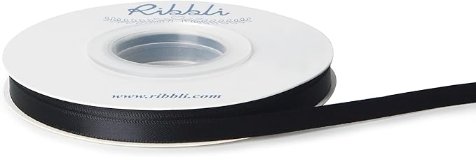 Ribbli Double Faced Black Satin Ribbon,1/4” x Continuous 25 Yards,Use for Bows Bouquet,Gift Wrapping,Floral Arrangement