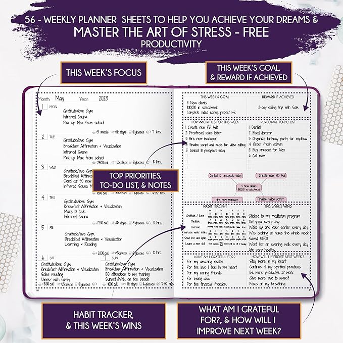 - REDUCE OVERWHELM, STRESS AND FIX PROCRASTINATION - Follow a unique 8 step system that will help you bring back harmony, clarity, and peace in your life while achieving your goals. This planner is perfect birthday gifts for men and women, anniversary gift for couple and lastly gifts for friends