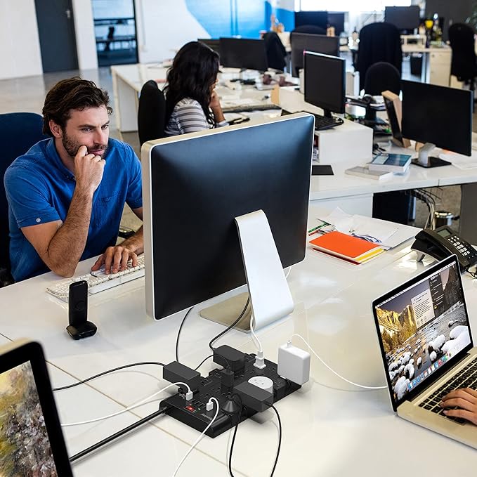 - 【28-in-1 Versatile Power Strip】 FCC, RoHS safety certified, with the extension cord and flat plug certified by UL. Superdanny power strip surge protector has 22 grounded 3-prong outlets and 6 USB ports, providing power for all devices that you need to plug in at one location. Perfect for gaming or media set up, surround sound system, TV, phone, tablet, PC, laptop, gaming computers, lamps, and other devices simultaneously.