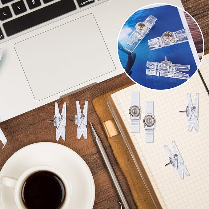 - Wide Application: These transparent push pin clips are great for hanging photos, paper, artwork, ticket stubs, home decor, sticky notes and notes on cork boards. Suitable for many occasions: school, office, home, meeting, cork board, perfect accessory for bulletin board