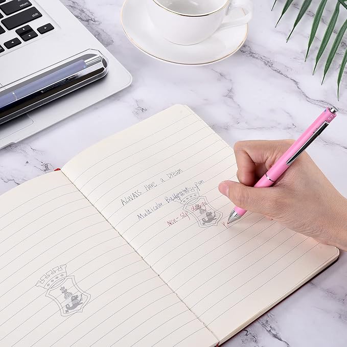 - 📝Multicolored pens in one: Metal-cased multi colored pens in one with well-balanced weight, write fluently, durable, smart, and portable. 2 colors metal pen(blue and pink) shell for your choice. The retractable pen has a delicate and cabinet appearance.