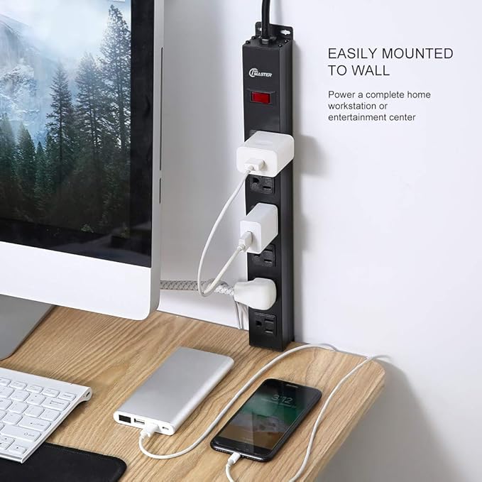 - WALL MOUNTED DESIGN:Durable metal power strip has mounting holes on the top and bottom, which can be installed under the table, table leg, wall and other places arbitrarily. It is convenient and can be used for a long time.