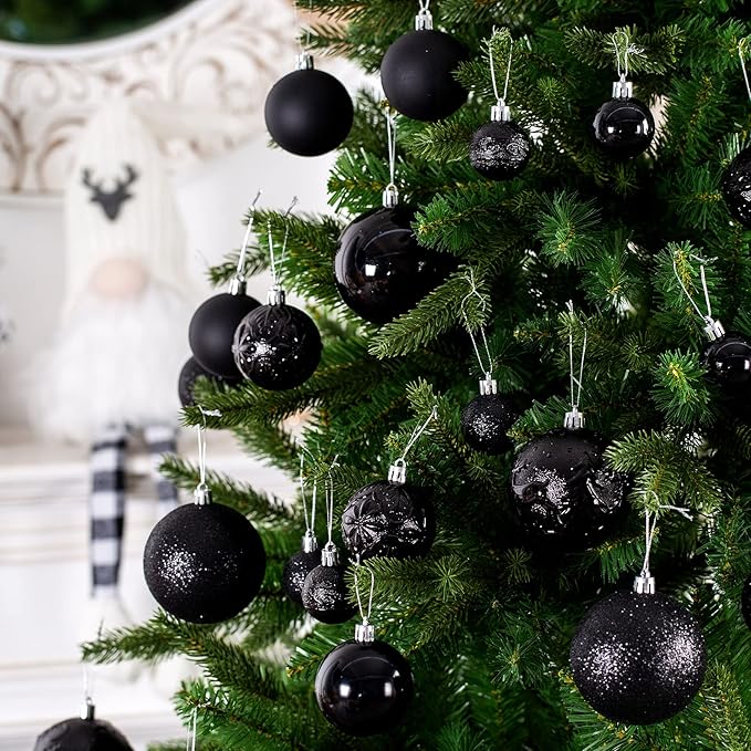 Christmas Ornaments for Xmas Trees,Black Shatterproof Christmas Ball Ornaments