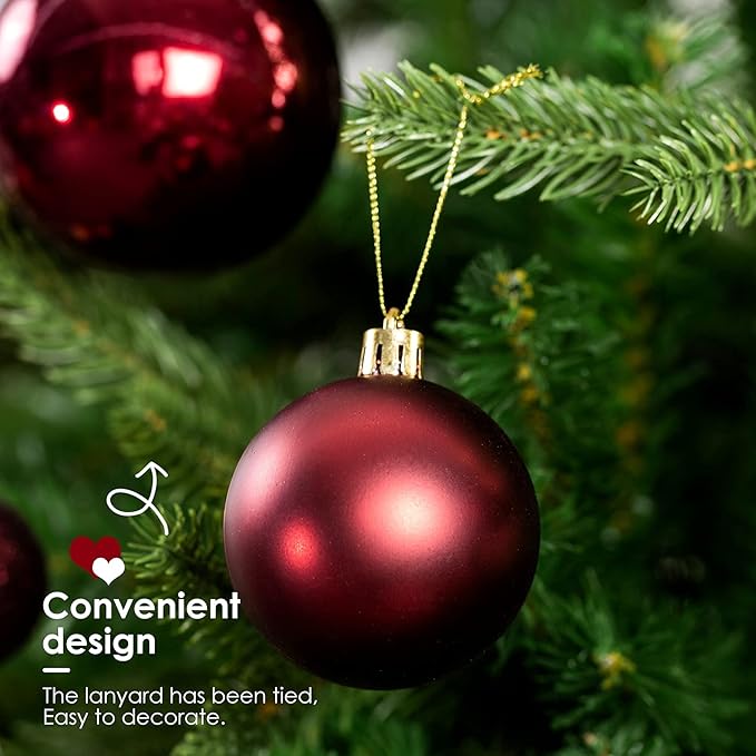 Christmas Ornaments for Xmas Trees,Burgundy Shatterproof Christmas Ball Ornaments