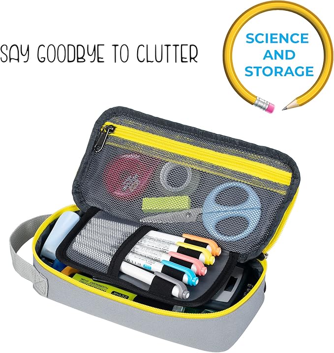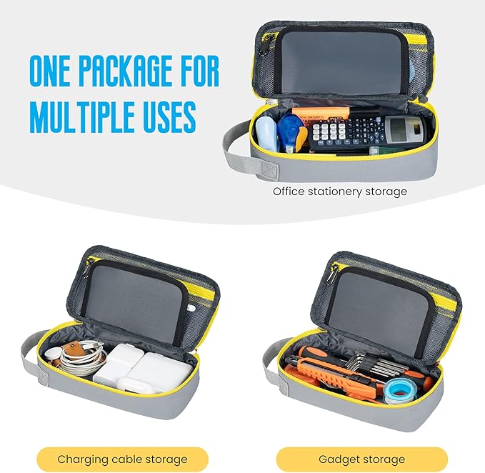 • PREMIUM MATERIAL: High quality advanced 1000D Oxford fabric with Anti Water Splashing and impermeable, scratch resistant. To provide more protection for your pencil case, the inner sponge padding can provide more soft support and protection to items inside; the double zippers with silicone heads are easier to grip