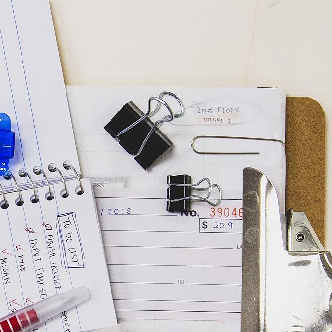 BAZIC Binder Clips Small Black 3/4" (19mm), Paper Clamps Paper Clip, Paperclips for Office School Supplies Home Kitchen Storage (12/Pack), 2-Packs