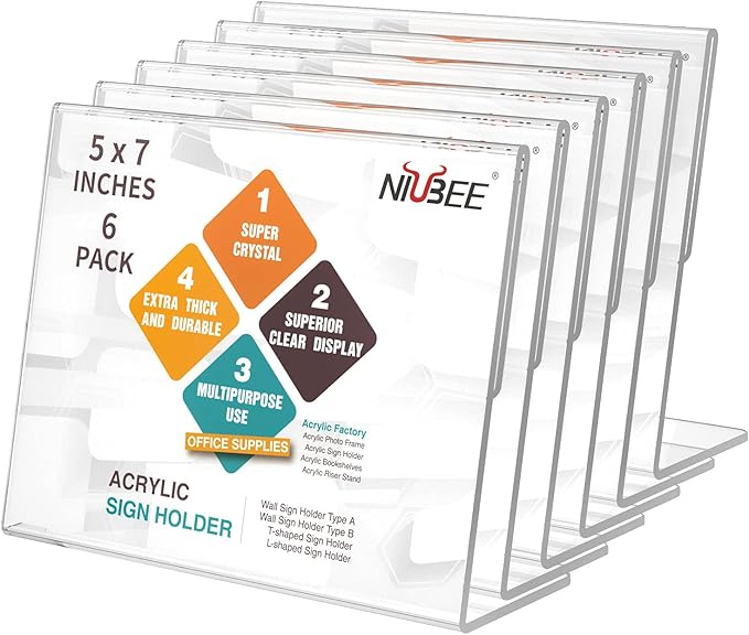 - MULTIPURPOSE USE - NIUBEE clear plastic holders are perfect for displaying signs flyers, paper, images, brochures, ads in the office, hotel, library, school, church, restaurant, bar, conference, exhibition, fair, trade show, wedding events etc.