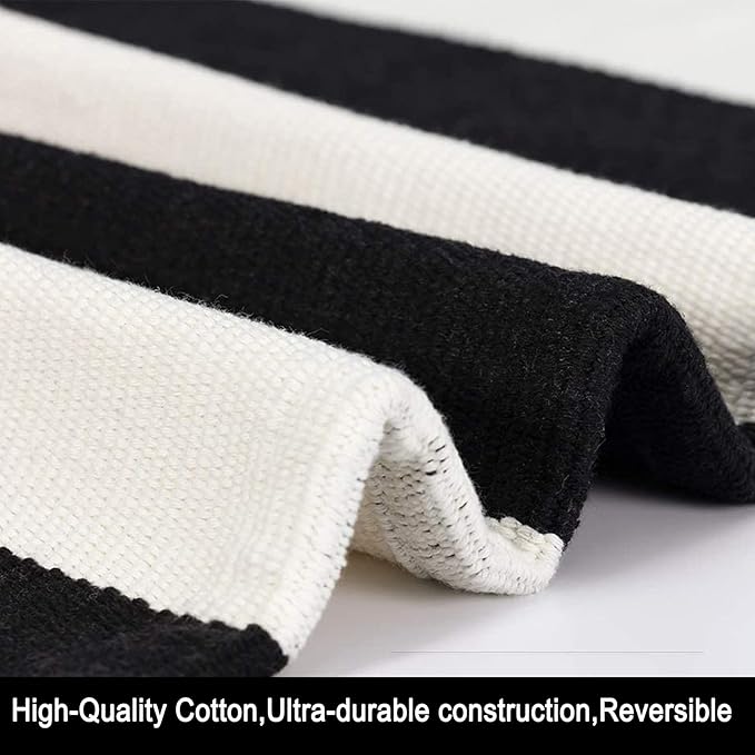 - 😍Classic Simple Pattern :Our black and white Striped rugs are designed with a simple and classic striped pattern, which are widely suitable for your house decoration style.The latest and most trendy farmhouse decor!