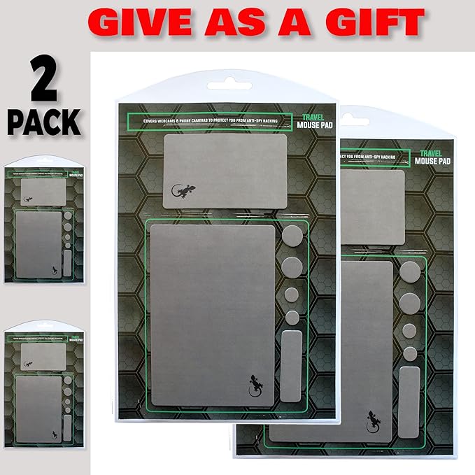 Mouse Pad Adhesive Bottom - Sticks to Any Surface - Portable - Webcam Covers and Screen Cleaner Included (2 x Gray)
