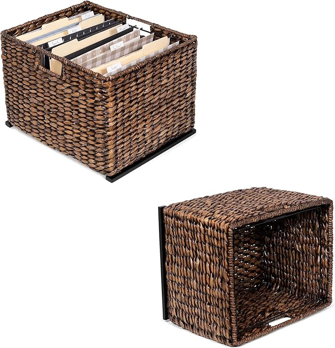 BIRDROCK HOME 2 Tiered File Cubby w/Wood Top - File Cabinet, Home Office Storage, Nightstand, Decorative Wooden Organizer | Desk, Modern Table, Shelves, Side Table, Craft Furniture - Brown Wash