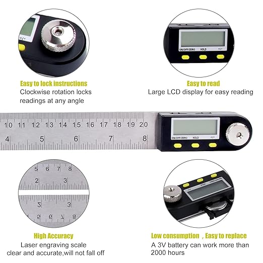 - 2-in-1: Digital Stainless Steel Ruler and Angle Finder - Easy Measurement of Inside and Outside Angles