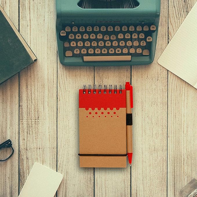DISCOUNT PROMOS 10 Recyclable Spiral Small Notebooks Pack - 60 Lined Pages - Red