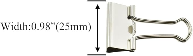HAHIYO Binder Clips Paper Clamps Spring Steel Sturdy 0.98 inches Width 0.31 Inch Capacity No Sharp Edges Heavy Duty Tight Grip Reusable Silver Metal Bright Finish for Home Office School 25 Pack