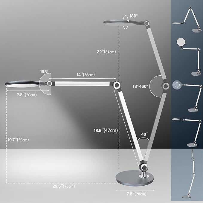 - Multi-angle Adjustment & Touch Control Design: Flexible adjustment of various angles to meet lighting needs in different scenarios. The circular illuminator design makes the light more concentrated and bright, good for study and working. You can also set the brightness levels just by sliding the touch pad lightly.