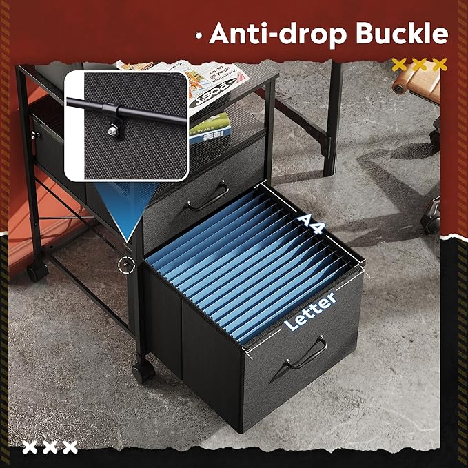 - Easy to Move: Rolling on 4 wheels, this mobile file cabinet can fix or move around your home office freely. Built-in brakes on front 2 casters to keep it in position and add stability. Unique fabric drawer design makes it only weigh 22 lbs. and light to move.