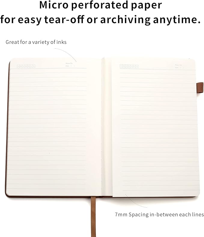 Deziliao Lined Journal Notebooks with Pen Loop, Hardcover Notebook Journal for Work, 100Gsm Premium Thick Paper with Inner Pocket, Medium 5.7"x8.4", (Brown, Ruled)