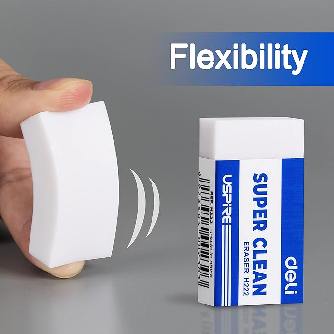 Deli Pencil Erasers, Pencil Eraser, 10 Pack, White Erasers, Erasers for Drawing, Kids, Artist, White, Large