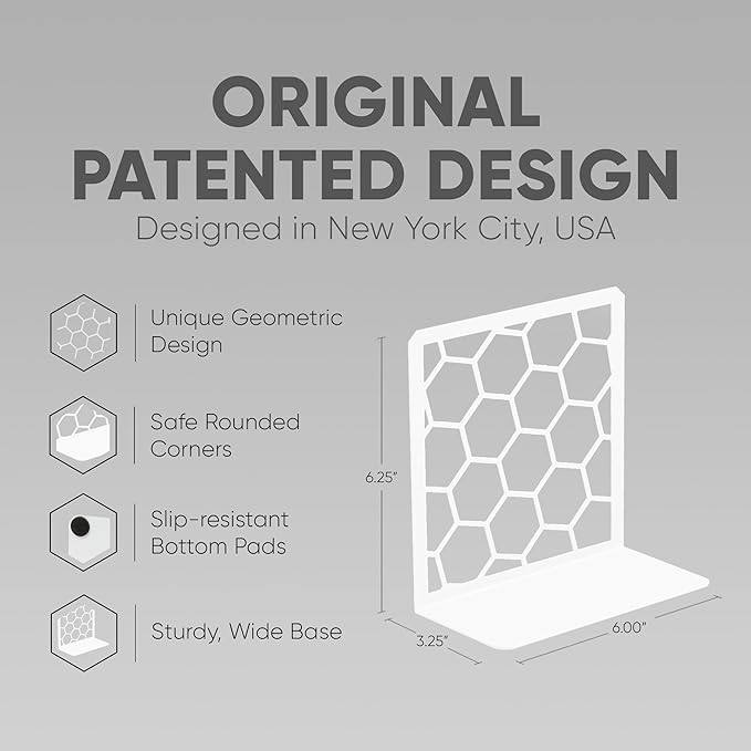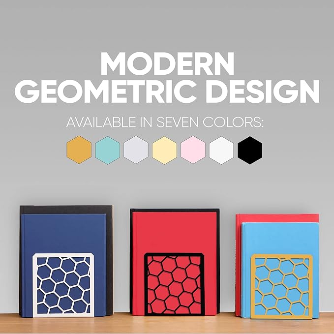 - Modern Elegance for Any Space: Transform your bookshelves, mantle, or desk into a sophisticated display with these Geometric Honeycomb White Metal Bookends, thoughtfully designed by Geomod, an American brand. Their stylish, modern design complements any home or office décor seamlessly.