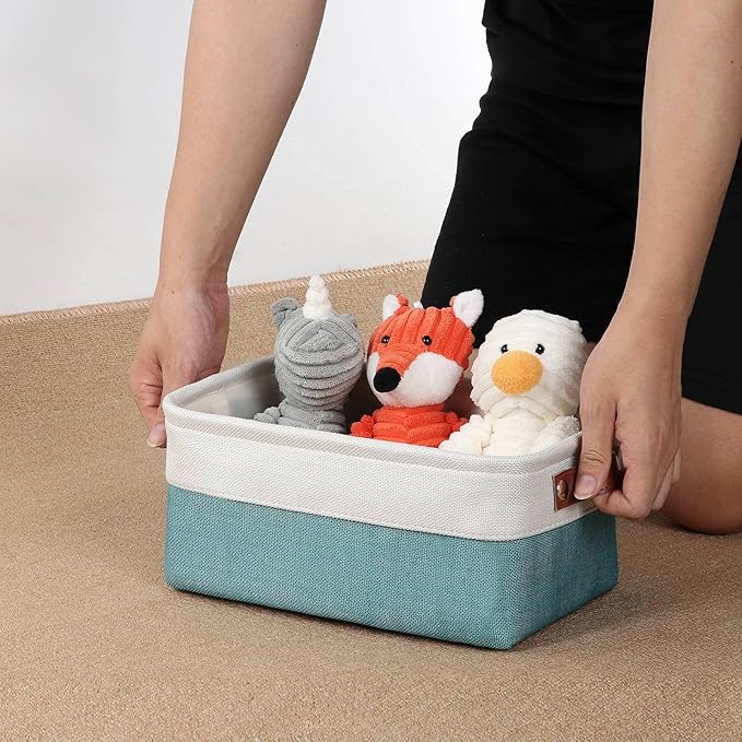 DULLEMELO Storage Baskets Bins for Organizing, Small Fabric Baskets for Shelves, Closets, Nursery, Home, Office, Empty Gift Baskets (6-Pack, White&Teal)