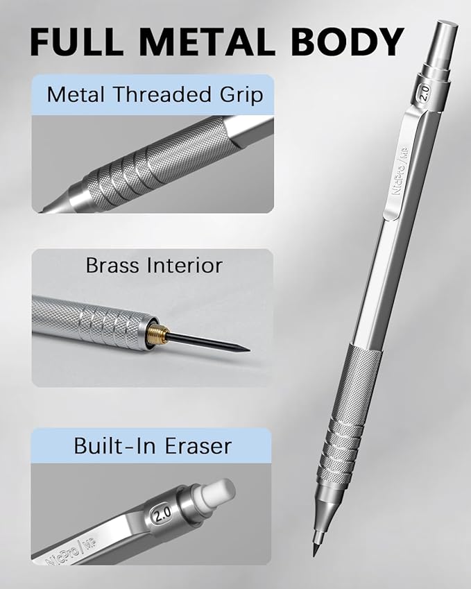 - DURABLE METAL CONSTRUCTION: Each pencil is made with a solid full-metal barrel and non-slip knurled grip for excellent stability and control. Built to withstand daily use in classrooms, studios, or job sites.