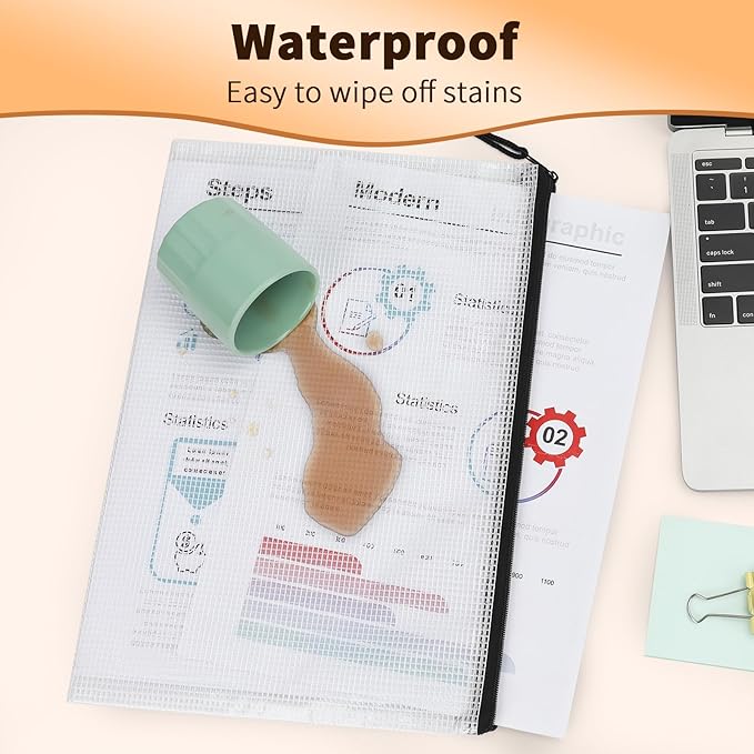 Umriox Zipper Mesh Document Pouch, 16.9x12.4 in (Black, 18 Packs), Clear Zipper Pouches, Waterproof Travel Pouch for Office Supplies, Puzzles, Board Games and Craft Projects