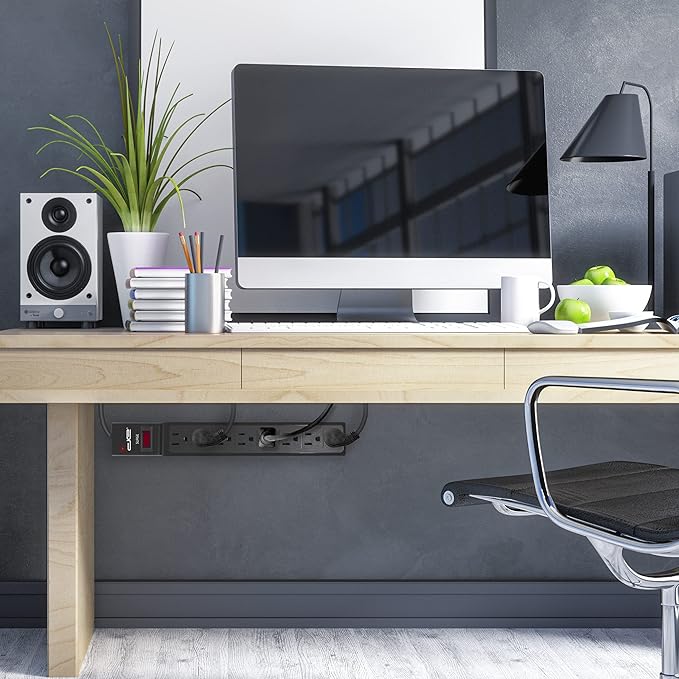 - Illuminated On/Off switch with built-in circuit breaker helps protect against power overloads. 350 J power surge protection rating is adequate for household usage.
