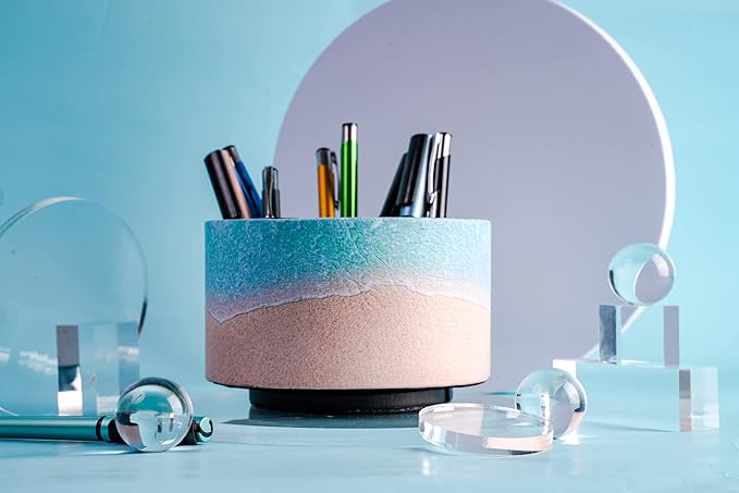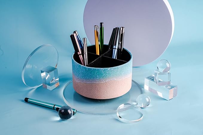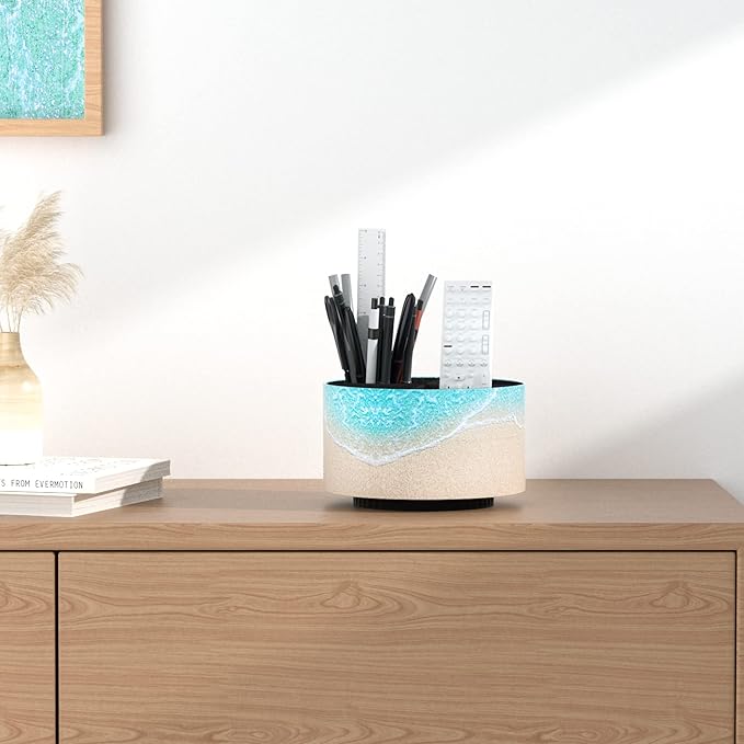 - ✎360° Revolving Design: You can freely rotate the pen holder steadily left and right,unique spinning base design allows easy access to items from any directions.The non-slip pads on the bottom keep it stay in place when rotating.