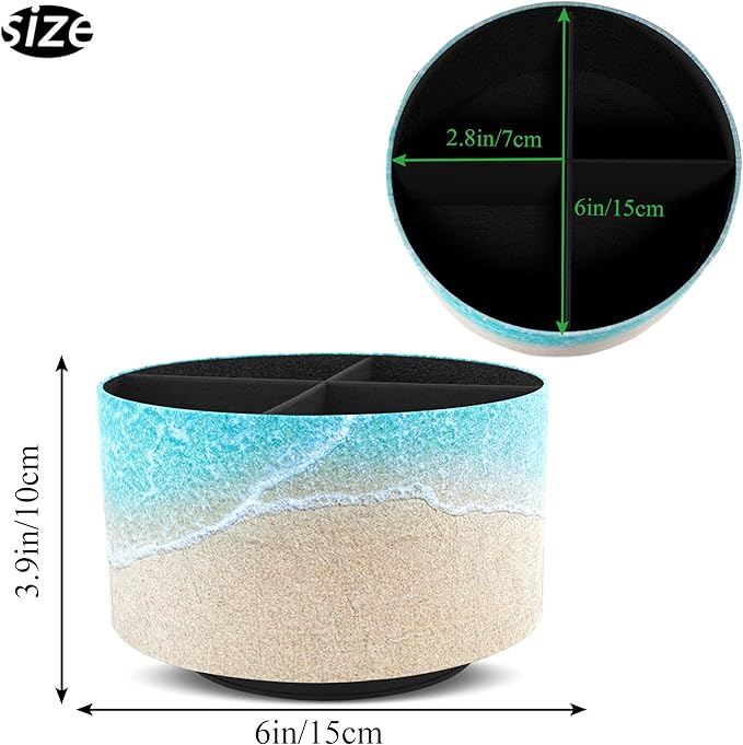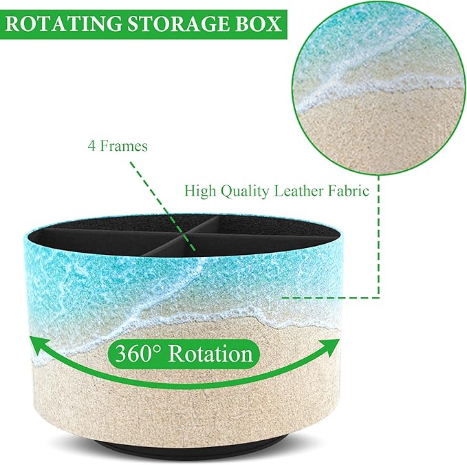 Hennaja Round Leather Art Supply Organizer,Remote Control Holder,360 Degree Rotating,Multi-Functional Pencil Holder,4 Compartments Desktop Stationary Organizer(1-Sandbeach)