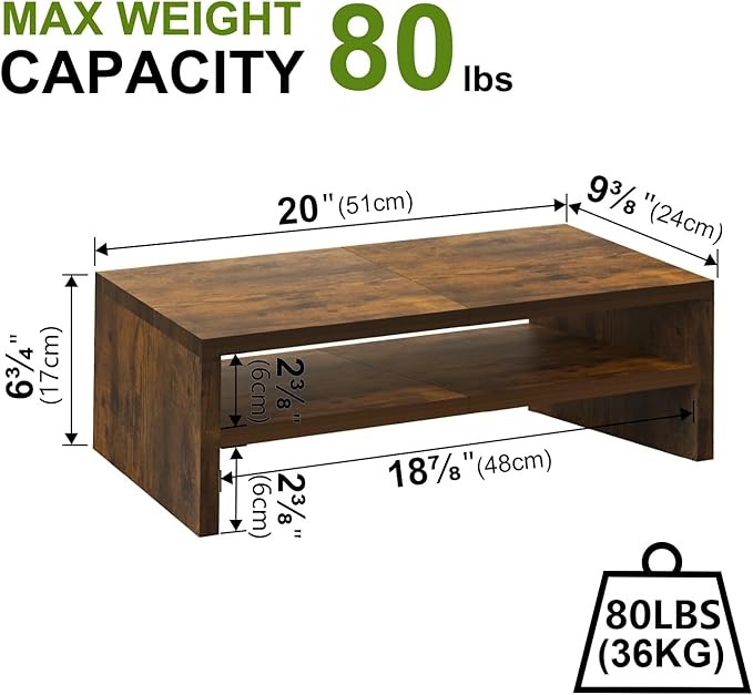 - 【Multi-function Stand】The monitor Stand can be used as a laptop stand, computer riser, desktop stand, printer stand. It provides enough area for storing laptops, keyboards, mouse, and keep your desktop tidy.