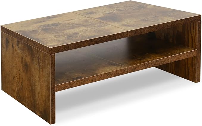 TEAMIX 2 Tier Wooden Monitor Riser Stand, Desktop Stand with storage for Laptop/PC/Printer/Keyboard, TV Stand Shelf Home Office Desk Accessories