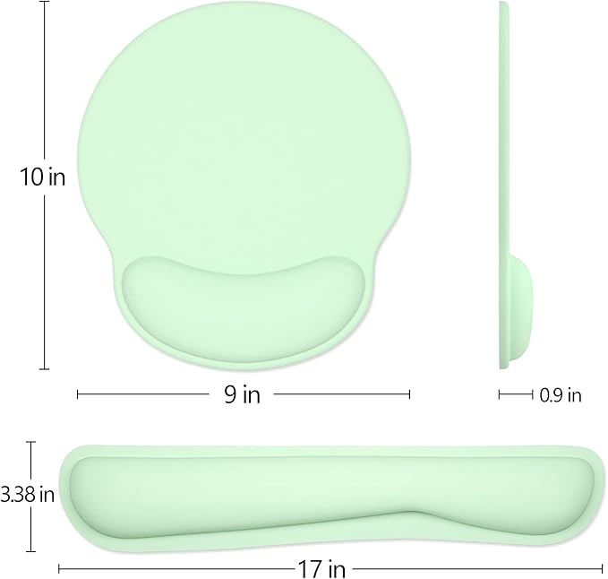 - Optimal Size: 17*3.38*0.9 inch keyboard wrist pad offers more support to your wrist, 10*9*0.9 inch large mouse pad allows your mouse to move freely. Perfect size fits most keyboards, laptops and mice