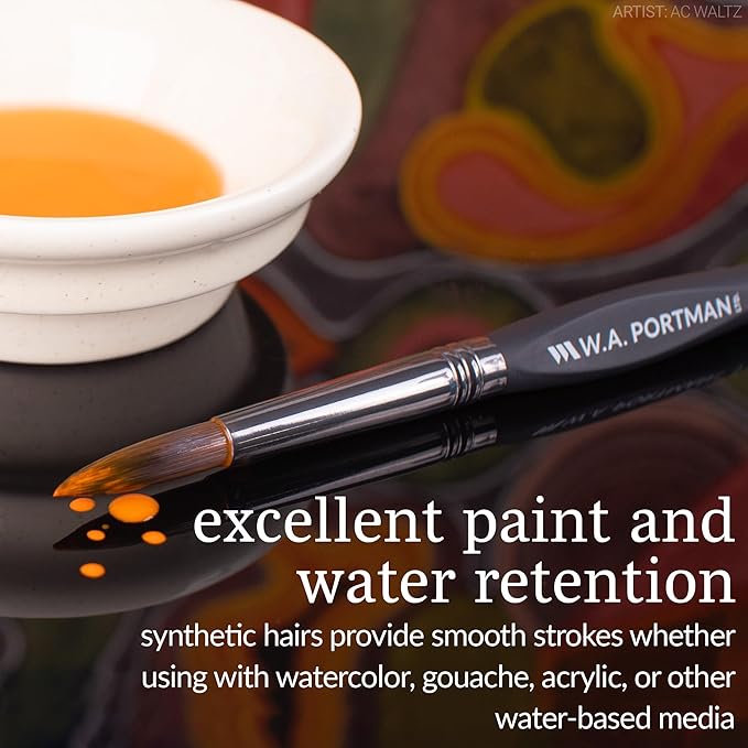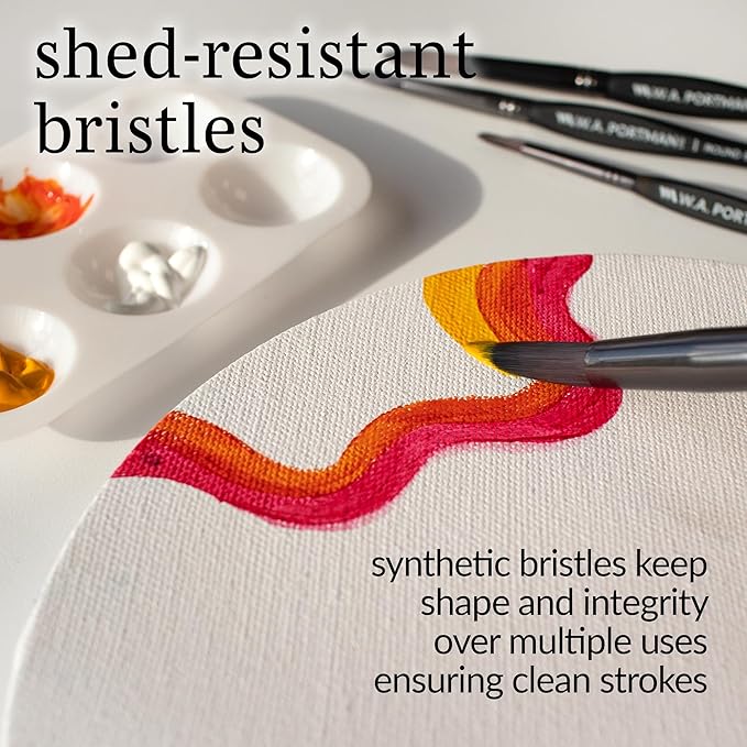 - Excellent Paint & Water Retention - W.A. Portman’s round art paintbrush sets (sizes 4, 8, 12, & 16) feature silky Taklon hair for excellent water retention. These painting brushes for acrylic paint include 4 paint brushes for canvas painting that can be used as paint brushes for watercolor painting, painting brushes for acrylic paint, and gouache paint brushes. Ideal for fine details and broad strokes, making them a versatile choice for any project