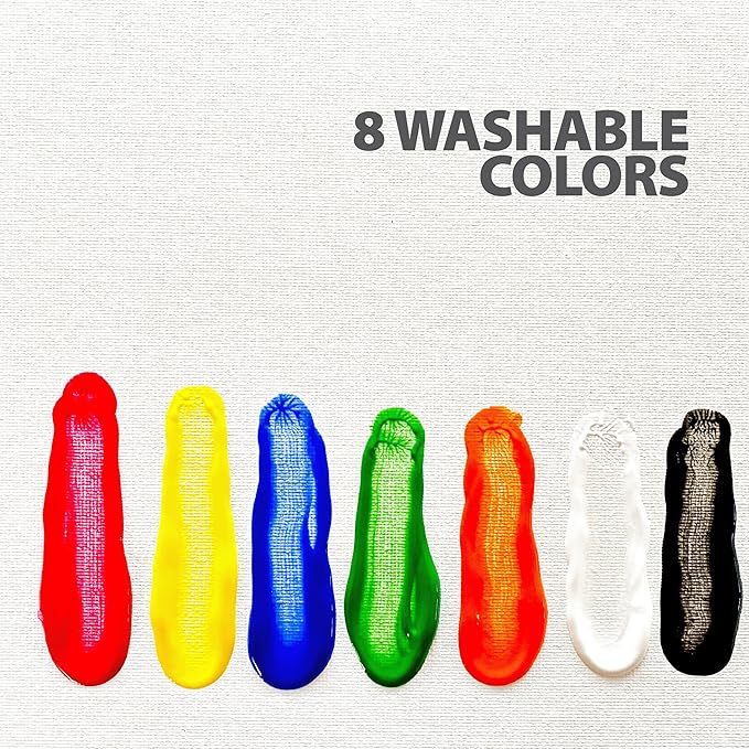 - WASHABLE PAINTING SET: Perfect for children’s art projects for preschool and kindergarten, try it on paper, canvas, rocks, pumpkins or any other fun surface to paint on. It’s easy on the skin and washes right off your hands and clothes.