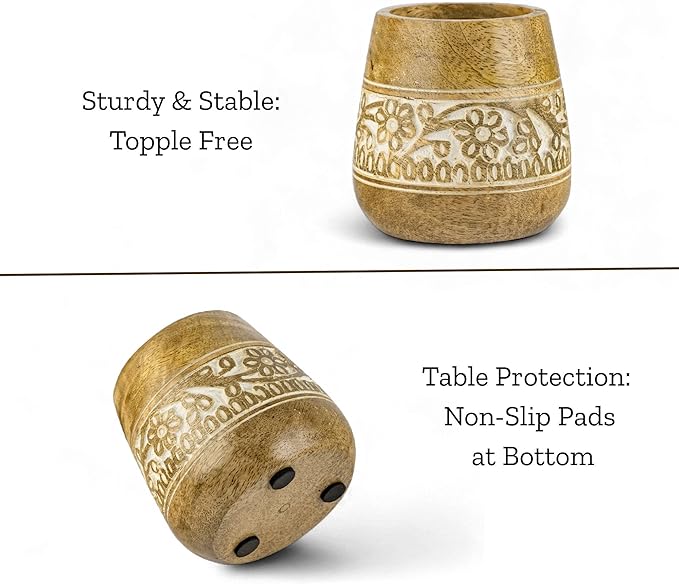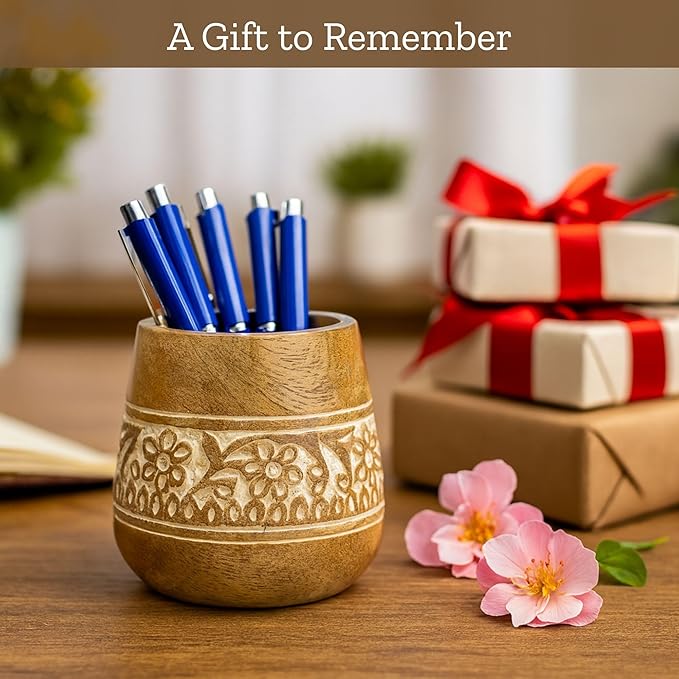 - Aesthetic School Accessories: This Geeky Pen Holder is Solid and Durable as it is Handmade from 100% Eco-friendly Mango Wood. Additionally, Floral Handcarving on the outer circumference and white filling inside it, adds a antique touch to it, making it elegant and decorative.