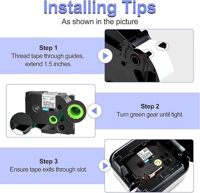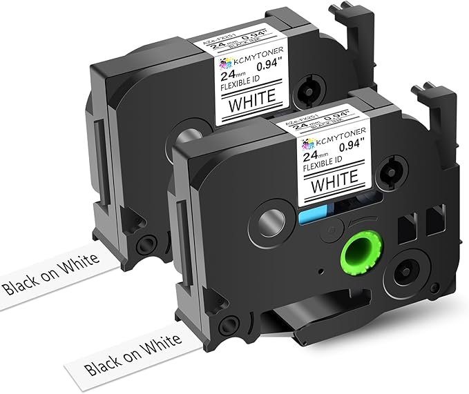 - Package Included: 2 pack KCMYTONER compatible for ptouch FX251 flexible-id laminated label maker tape for cable/wires wrapping; color: black text on white tape; width: 24mm (0.94 inch); length: 26.2 feet (8m)