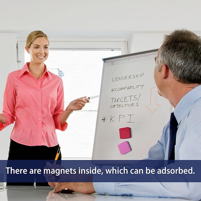 - 【 Magnetic Whiteboard Erasers】: These magnetic erasers are easy to be used and cleaned up, they are not just erasers, also can be used as magnets on whiteboard or any other magnetic surface, a handy necessary for classroom, school, home, office meeting