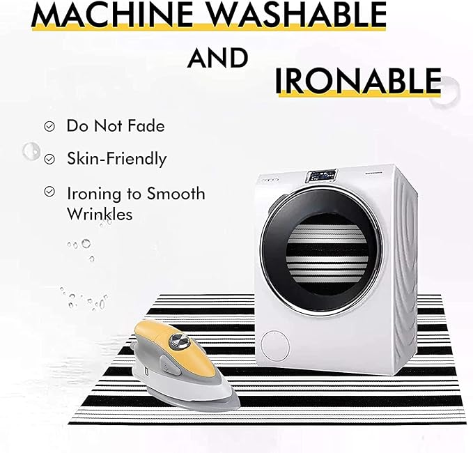 - 【Premium Quality】: OJIA 5' x7' black and white striped living room rug is made from woven cotton/polyester/viscose fabric that is soft and comfortable to touch, makes your doormat color bright, stain-resistant, shrink-proof & easy to air dryer.