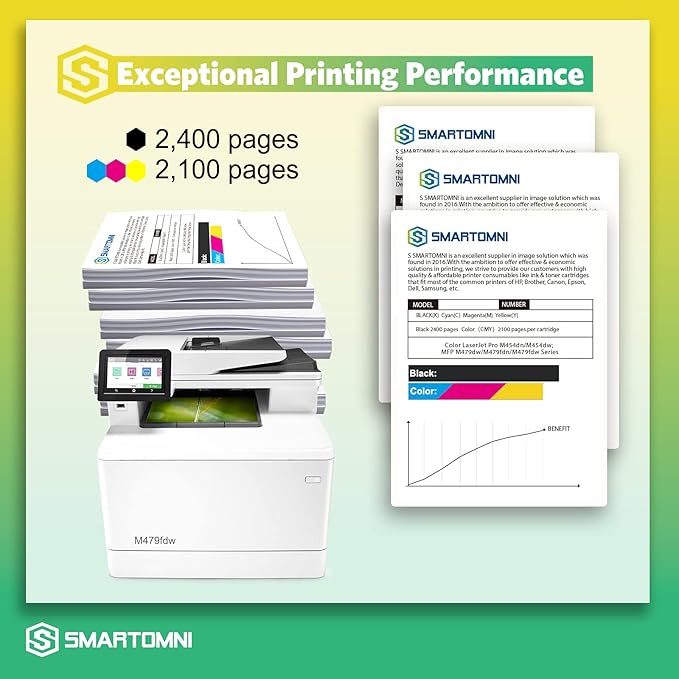 - Multiple Protective Packages: It includes 4 packs S SMARTOMNI compatible HP 414A Toner Cartridges (1 Black W2020A / 1 Cyan W2021A / 1 Magenta W2023A / 1 Yellow W2022A)