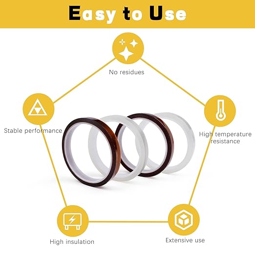 - 【EXCELLENT ADHESION & HIGH INSULATION】Unlike other heat tape for sublimation with odour and cracking, our heat press tape is pretty sticky, the strong silicone adhesive will hold on tightly to any surface. Our high resistant tape are also high insulation, acid and alkali-resistance, low electrolysis, mechanically sound, crocking resistance. The heat tape can well protect various electronic and electrical products, motors, solders, printed circuit boards, Packing fixation, etc.