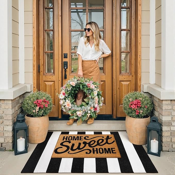 - Customized Size for Hello Doormat: Size is 27.5" x 43", welcome mat fits a hello door mat to form double layered front rug. Striped door mat outdoor is a fantastic choice for farmhouse decor or modern decor