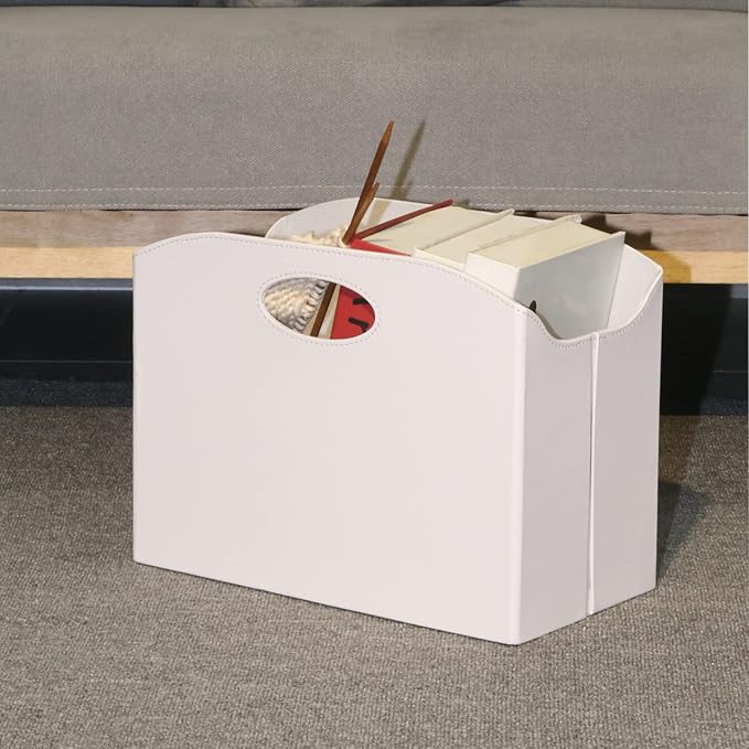- Perfect for home or office - Magazine organizer bin is perfect for storaging on the floor or tabletop.Keep your favourite magazines and books within easy reach and your space tidy with this lightweight, portable and spacious holder by placing it at your living room, bedroom, study room, home office or entryway.