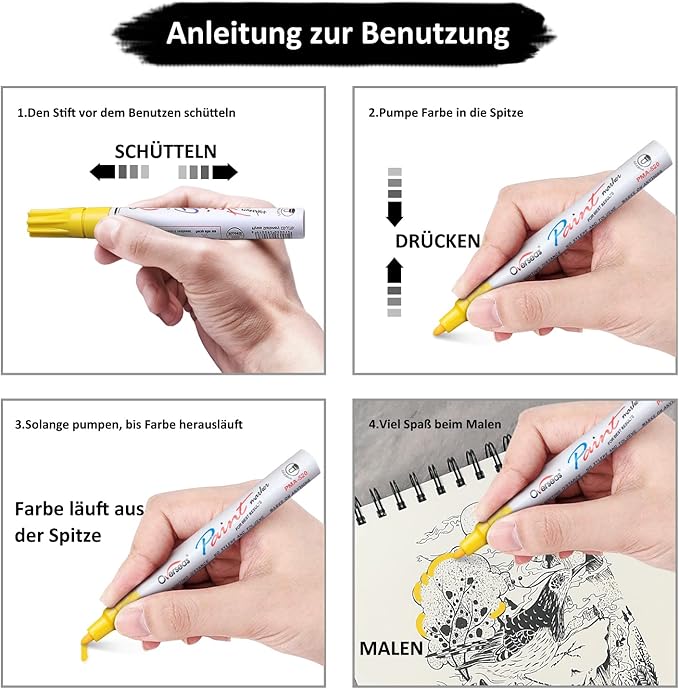 - Premium Quality Paint Pen: These markers are made of opaque ink that is chemically stable, lightfast and quick-dry. Oil-based ink is odorless and non-toxic. We fill each marker with 5 ml of premium Japanese ink. The ink dry within a minute ensure your beautiful creations get to last for longer.