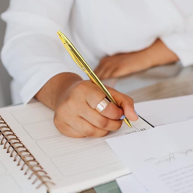 3 Pack Slim Gold Ballpoint Pens Black Ink 1 mm, Great Gift for Business Office Students Teachers Wedding Christmas (Gold)