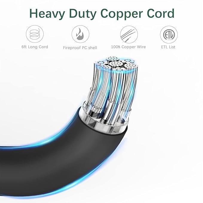 - Power Strip with Multiple Protection: Overload, over-current, over-voltage, and over-heated protection, fireproof material, protect all plugged devices 24h and ensure a safe and long-lasting use.
