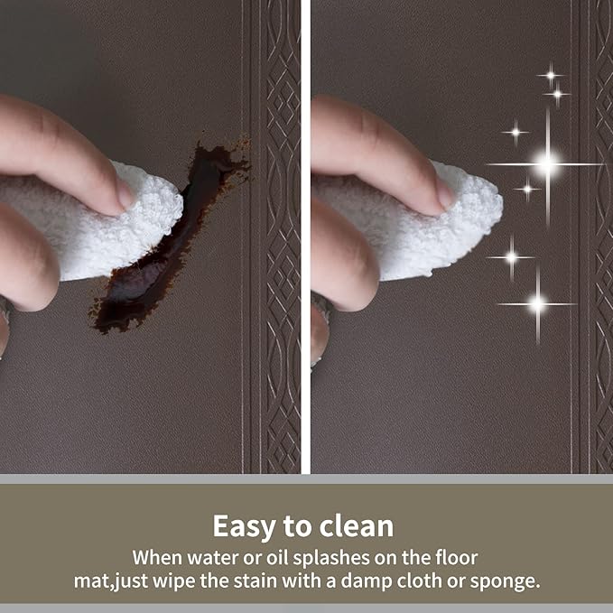 - EASY TO CLEAN stain resistant and waterproof material makes Broad i Home Anti Fatigue Mat easily wipe clean and will not collect dirt. Novel innovation of natural wood grain pattern designs on the top of our comfort mat makes you be immersive