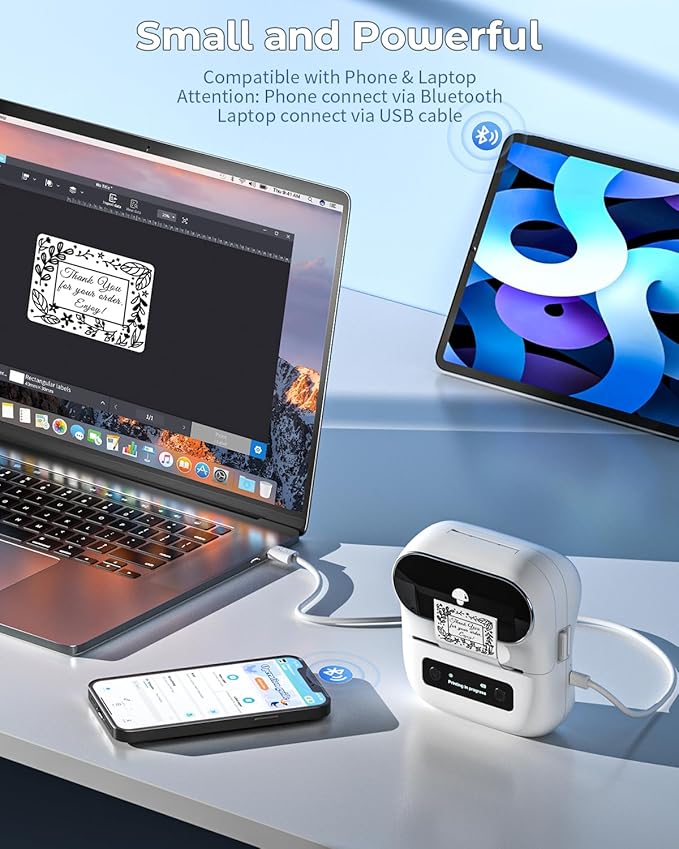 - Compatibility and Convenience: Designed to work with a wide range of devices, the Phomemo portable label printer ensures you can print labels anytime, anywhere. Whether you're using a laptop or any mobile device, the M220 label maker has got you covered. (The label maker is compatible with Windows, macOS, Linux, and Chromebook laptops/PCs, as well as Android and iOS phones or tablets)